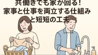 共働き家庭が家事と仕事を両立するためのコツや時短の工夫を紹介。家が回る仕組み化の考え方と便利グッズ・実践例を詳しく解説。