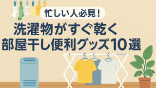 部屋干しで乾きにくい…そんな悩みは便利グッズで解決!衣類乾燥除湿機や速乾ハンガー、サーキュレーターなど、忙しい人向けの時短アイテムを厳選紹介。ニオイ・湿気対策も万全!