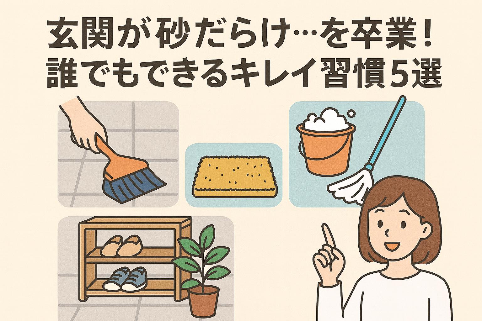 この記事では、「玄関の砂埃をためないカンタン習慣」をテーマに、毎日1分でできる掃除のコツから、週1回のメンテナンス方法、さらには家族みんなで取り組めるキレイ習慣まで、わかりやすくご紹介します。