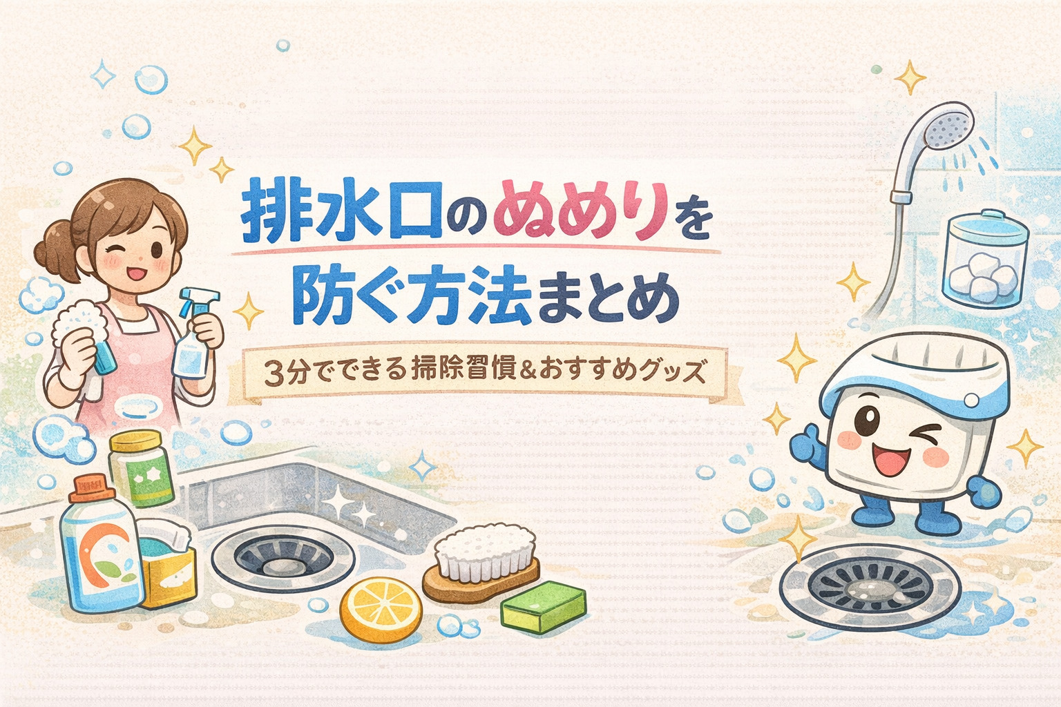 今回は、掃除が苦手な方や、忙しくて時間が取れない方にもぴったりの、 やさしくてシンプルなぬめり予防のコツをたっぷりご紹介。 初心者さんでも安心して取り入れられるよう、使いやすい便利グッズも一緒にご紹介します。