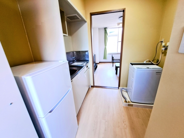 - 避難経路をふさぐ位置に冷蔵庫や洗濯機を置かない